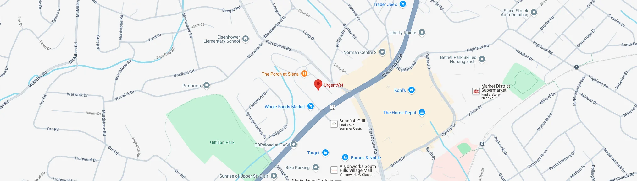 UrgentVet Upper St. Clair vet clinic is a trusted walk-in veterinary care provider, offering urgent and comprehensive care for cats and dogs. UrgentVet provides an affordable and accessible solution for walk-in appointments and after-hours emergency veterinary needs. We are dedicated to serving pets in the Pittsburgh area including those in Upper St Clair, Bethel Park, Scott Township, Bridgeville, Thompsonville, and points beyond.